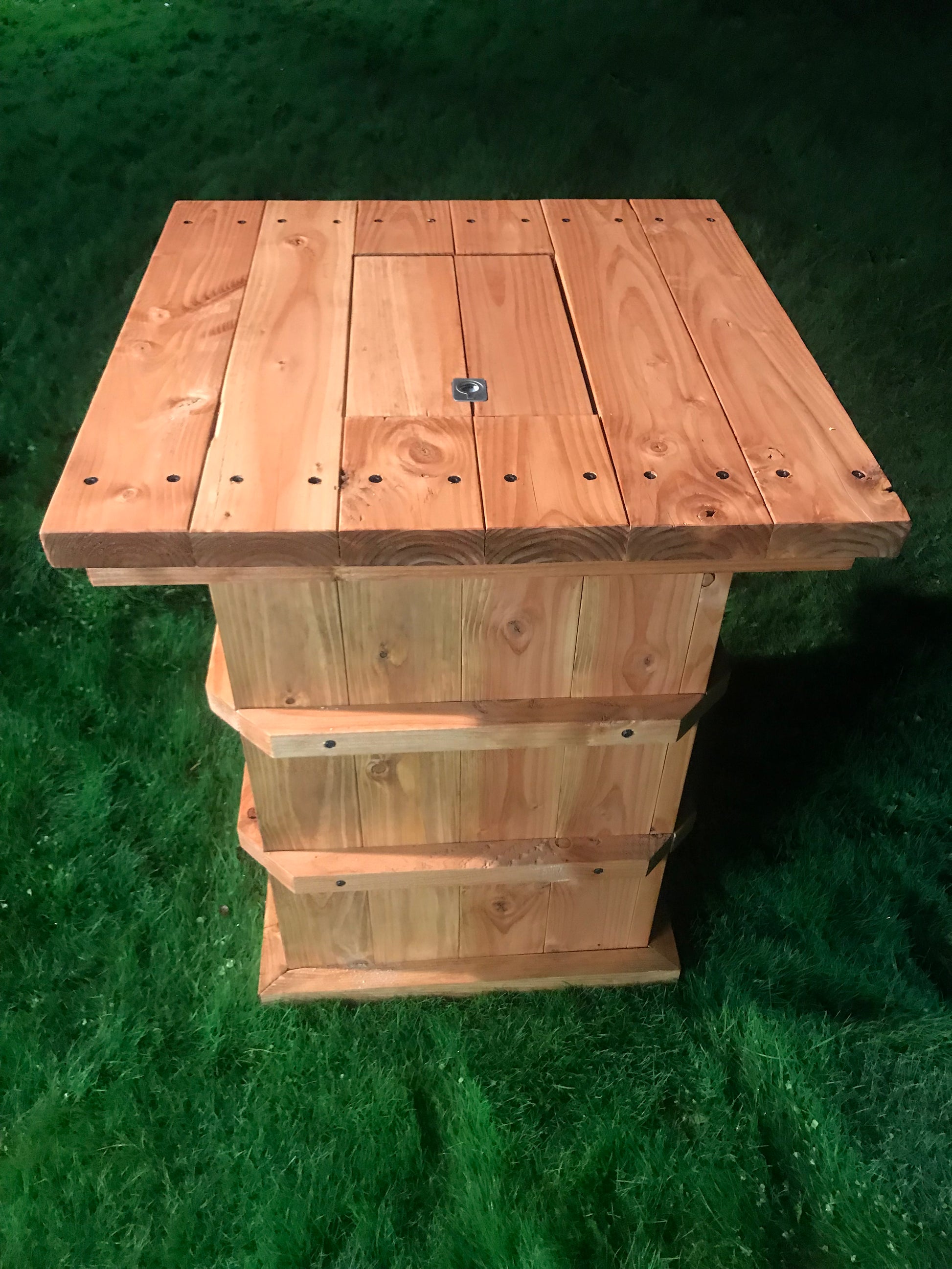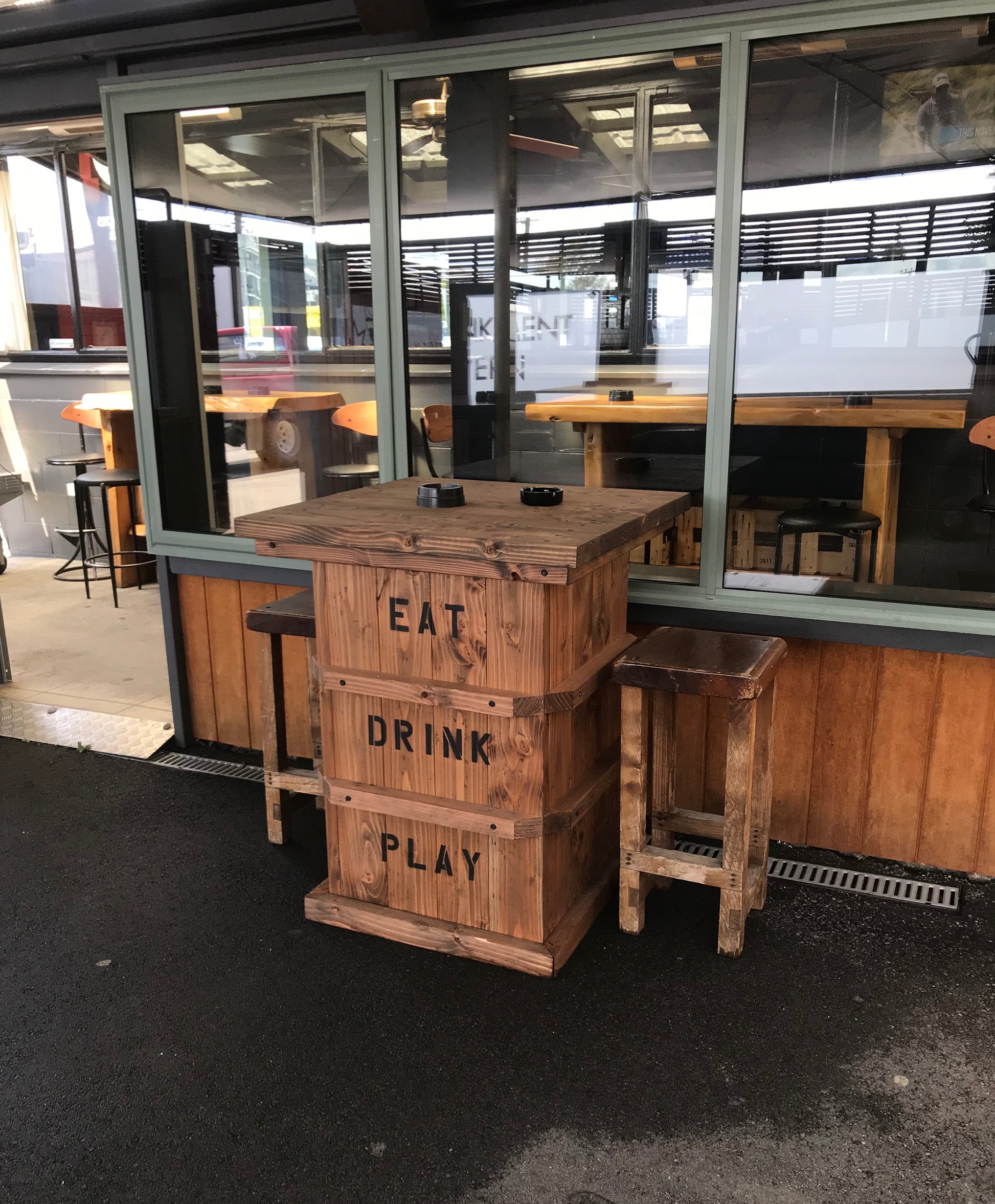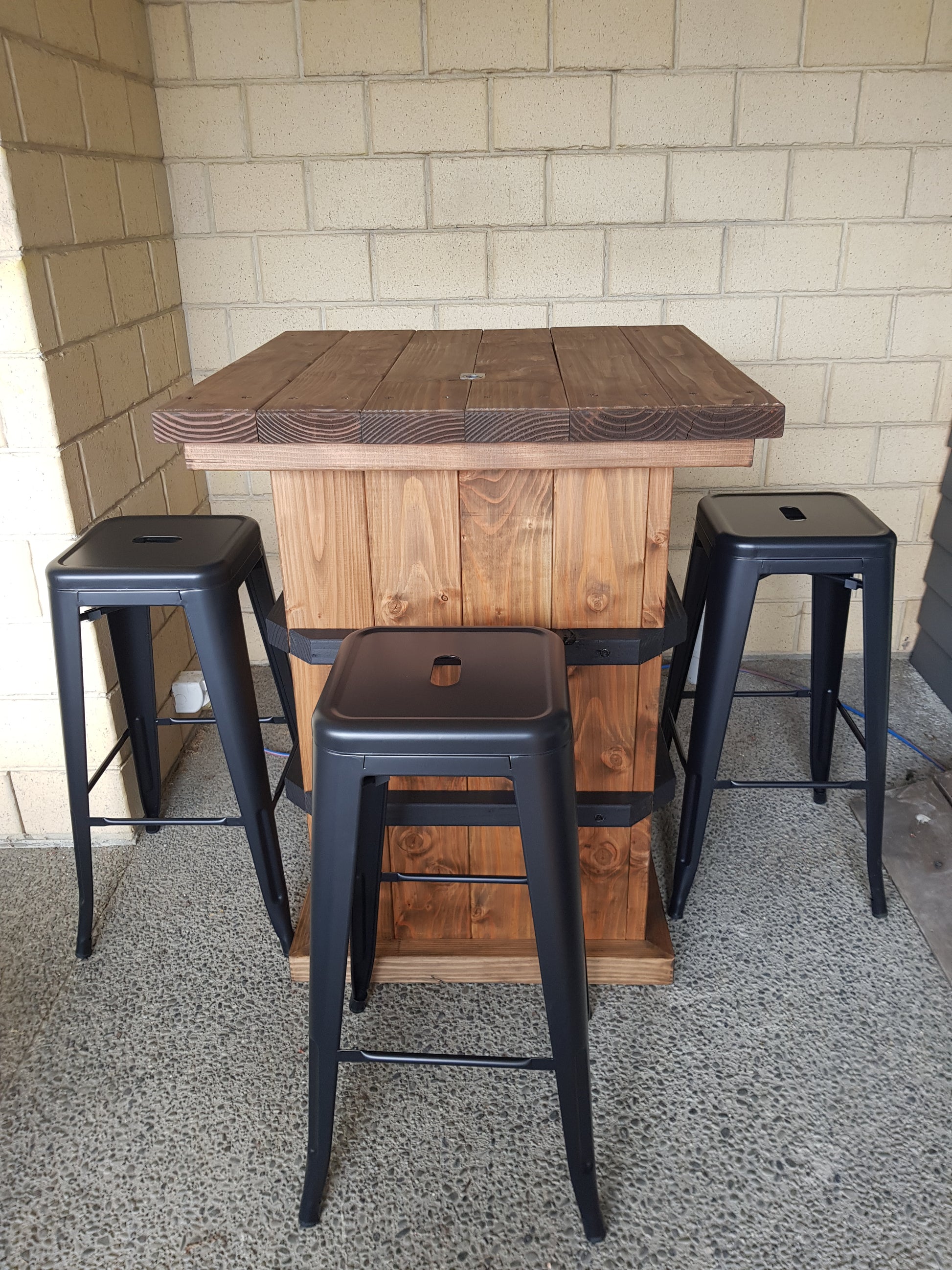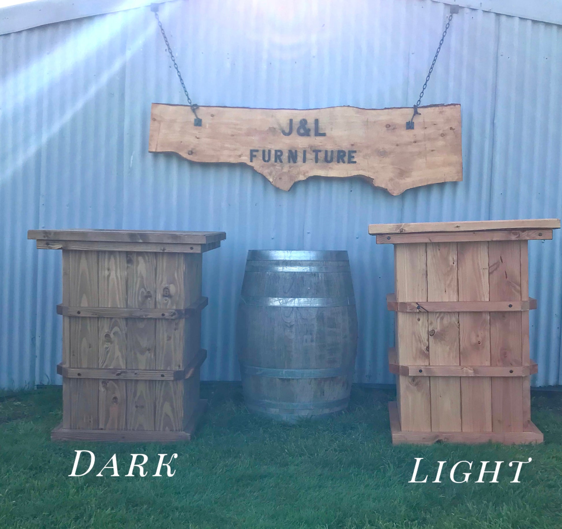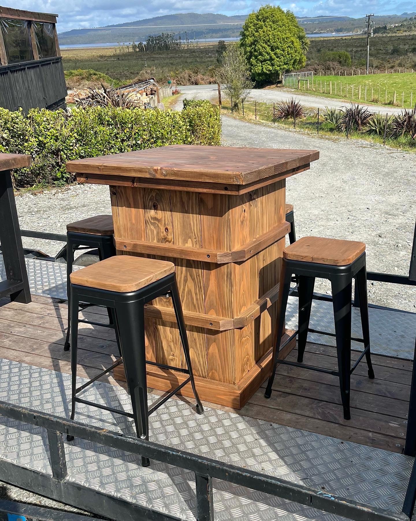 This rustic Woolpress Style Bar Leaner combines beautiful Nz Oregon with a dark or light oil stain for a chic look that can be used both indoors and outdoors. Enjoy it for years to come; simply cover when not in use to keep it safe from the elements. Stand 1045mm tall, with a 840mm square top — it's a statement piece you won't want to miss.