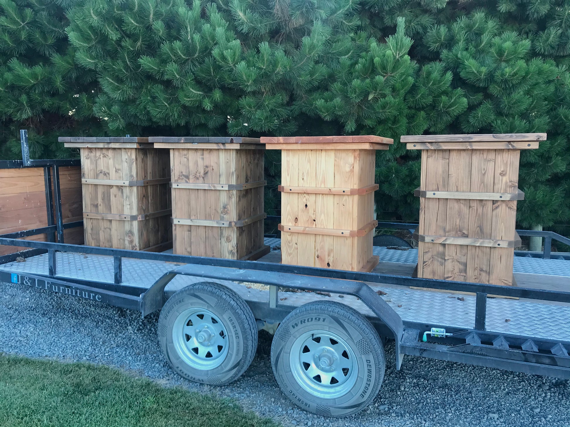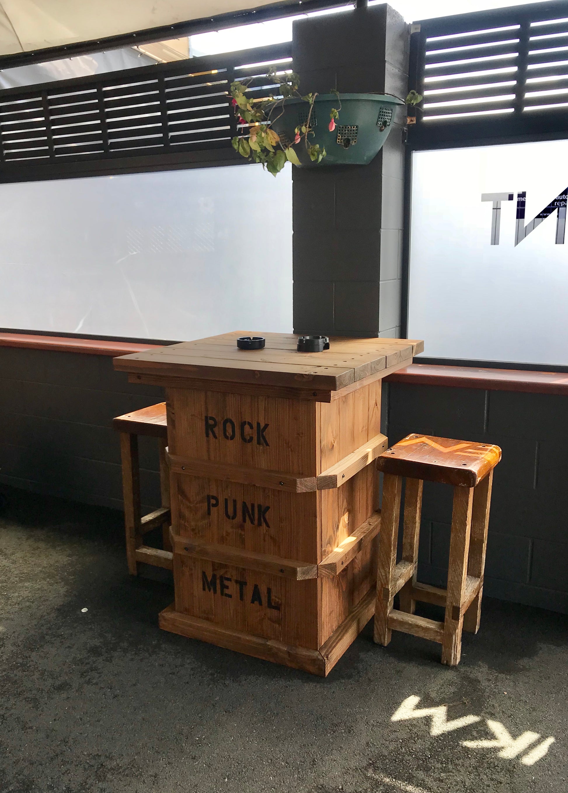 Macrocarpa or Oregon topped bar stools are $140 each (685mm high) and $195 each (785mm high)